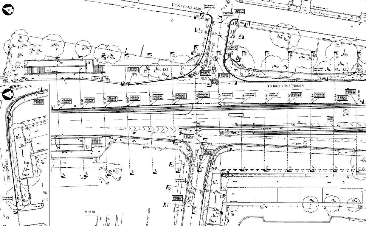 Setting Out, Long & Cross Section Drawings